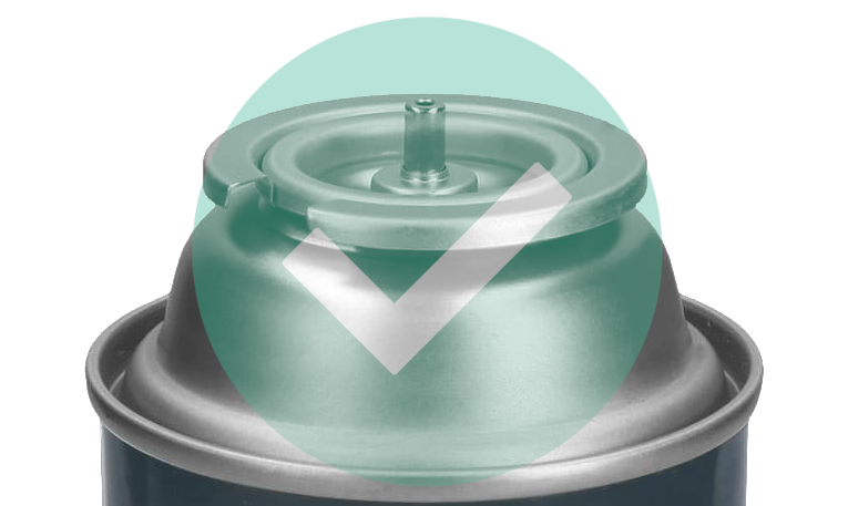 • Inserte la boquilla del recipiente verticalmente hacia abajo en la apertura de recarga de gas.